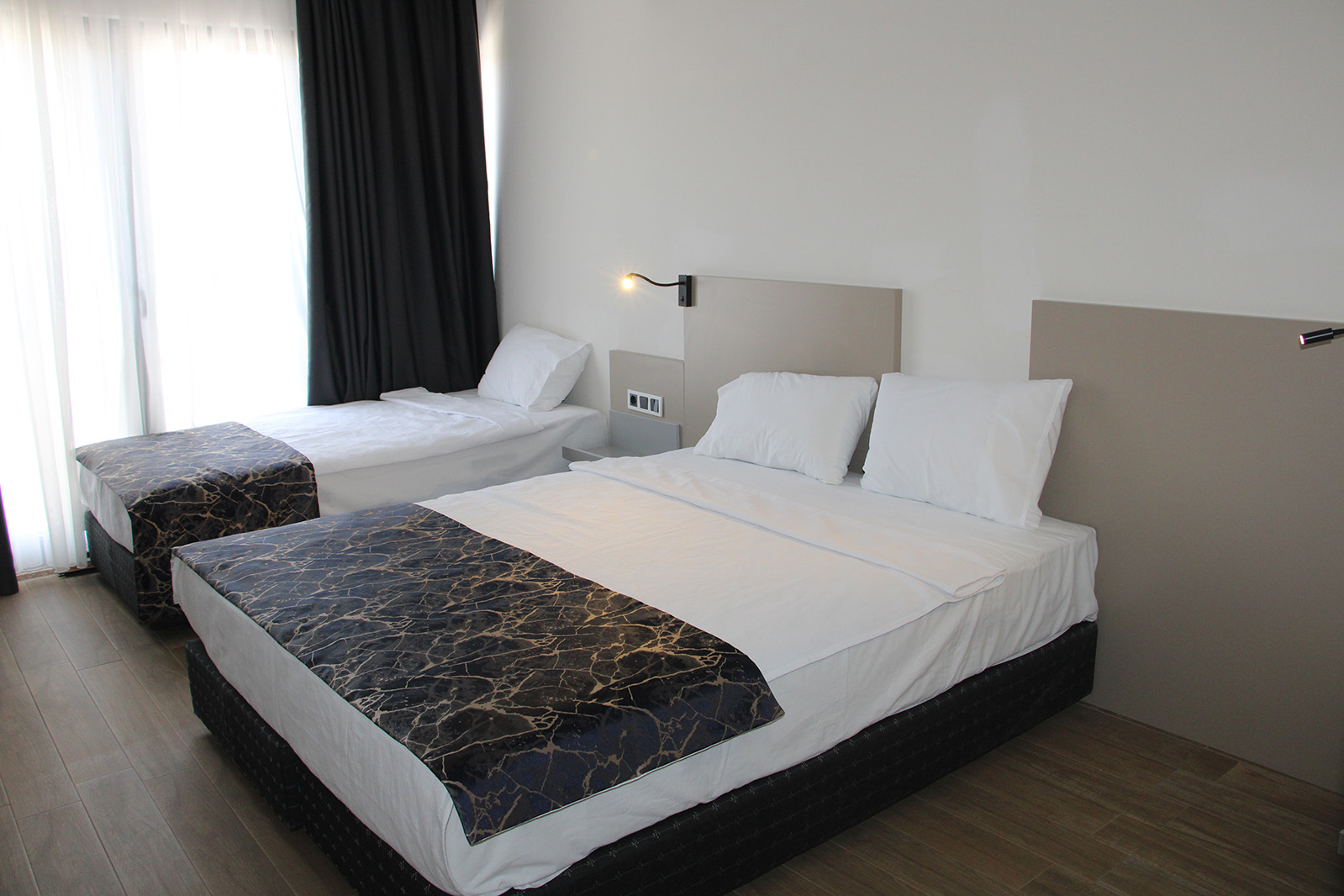 Aileler için özenle hazırlanan 3 kişilik aile odalarımız, geniş ve ferah yapısıyla konforlu bir tatil imkânı sunar. Bir çift kişilik yatak ve ek tek kişilik yatak seçeneği ile herkes için rahat bir uyku alanı...